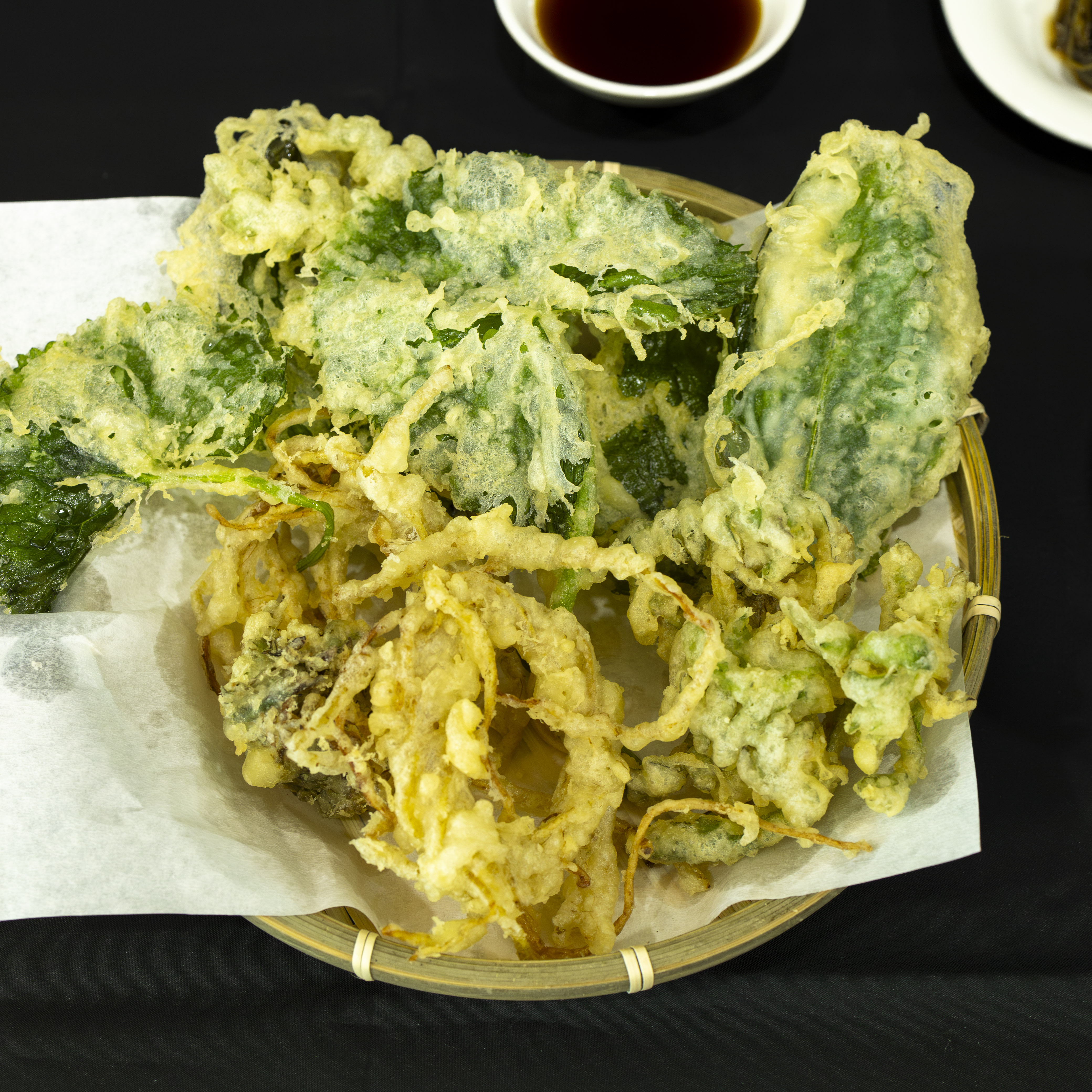 튀김의 재료는 곰취, 명이나물, 더덕, 냉이, 달래 쑥/쑥갓등등 입니다.