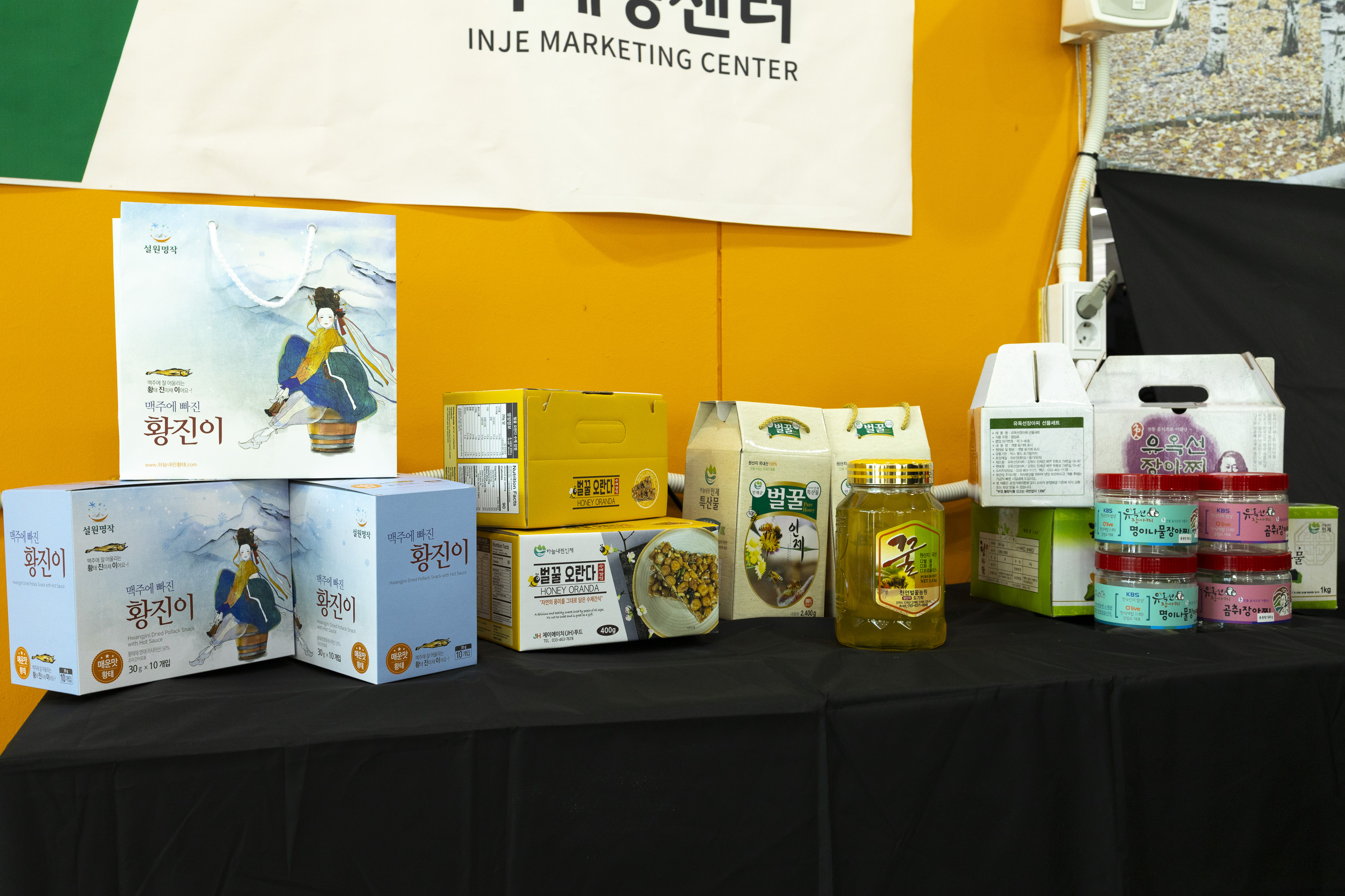 행사장에 들어와보니 인제의 특산물들이 전시되어있었습니다.