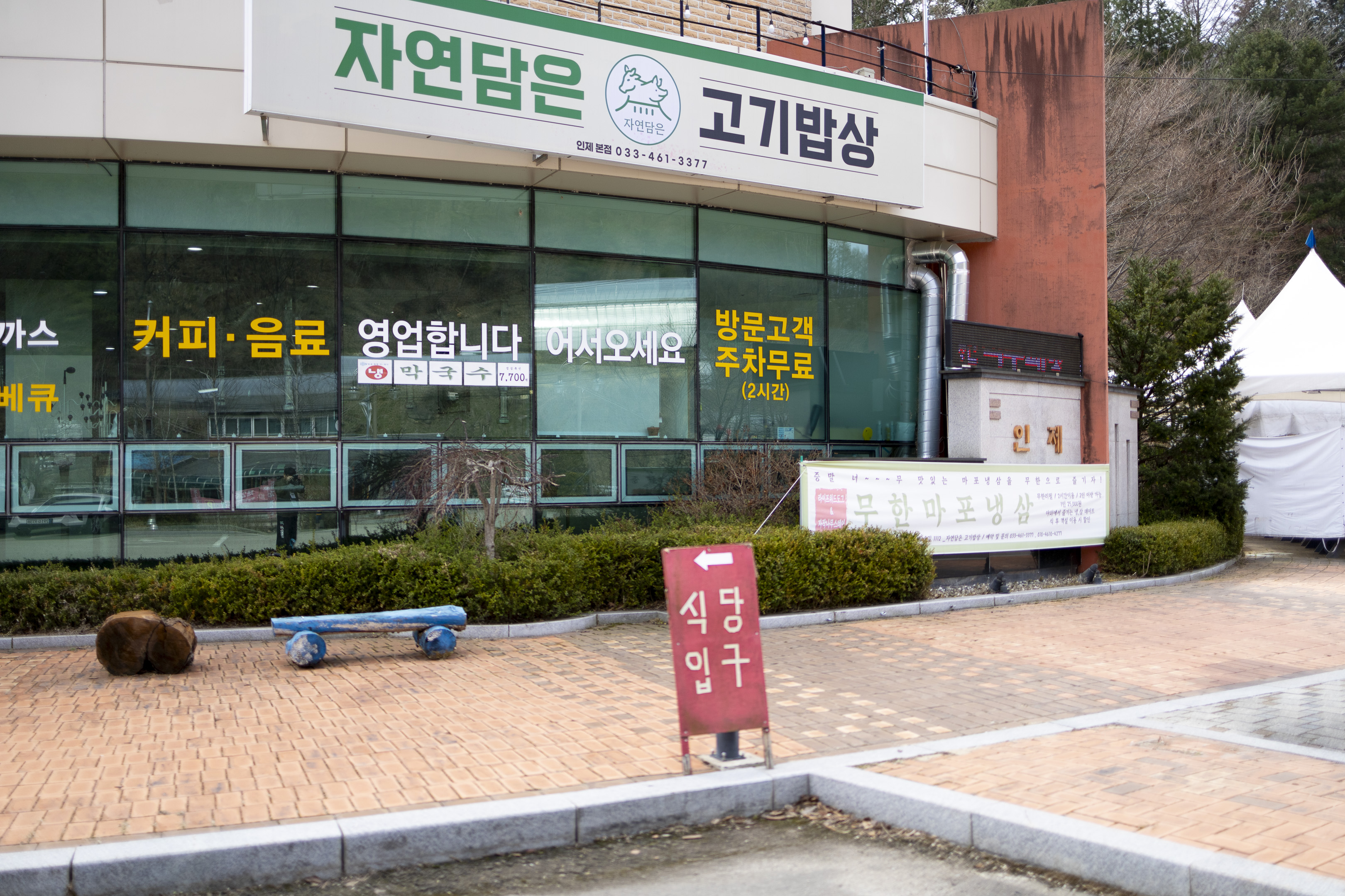 강아지와 함께 숙박할 수 있는 라이프위드도그와 붙어 있는 자연담은 고기밥상이라는 곳이었습니다.