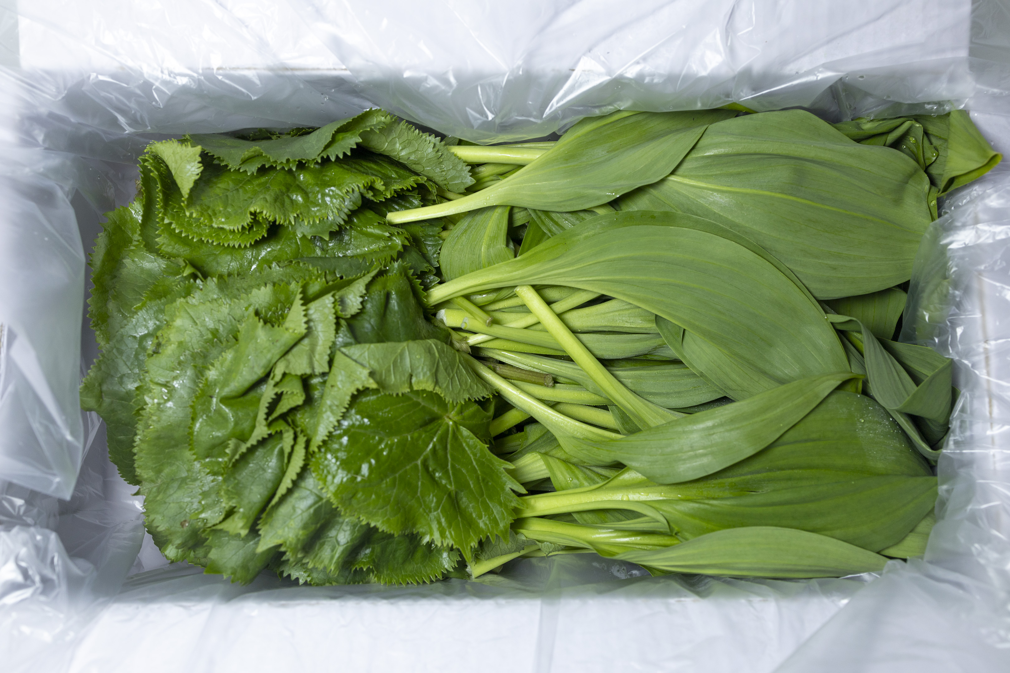 오늘 아침 딴것 같은 신선한 곰취와 명이가 한가득...